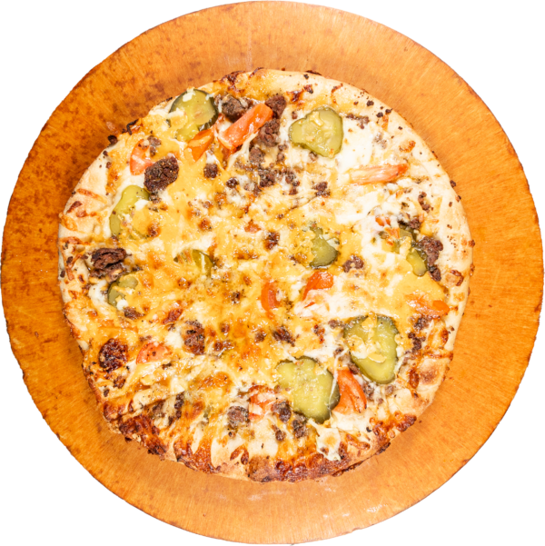 HOUSE-MADE RANCH DRESSING, DILL PICKLES, RED ONIONS, SMOKED BACON. TOPPED WITH PARMESAN.