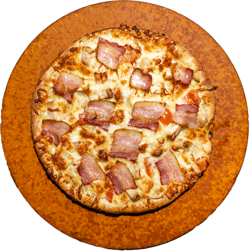 CHIPOTLE SAUCE, ONIONS, BEEF OR CHICKEN, BANANA PEPPERS, TOMATOES, SMOKED BACON