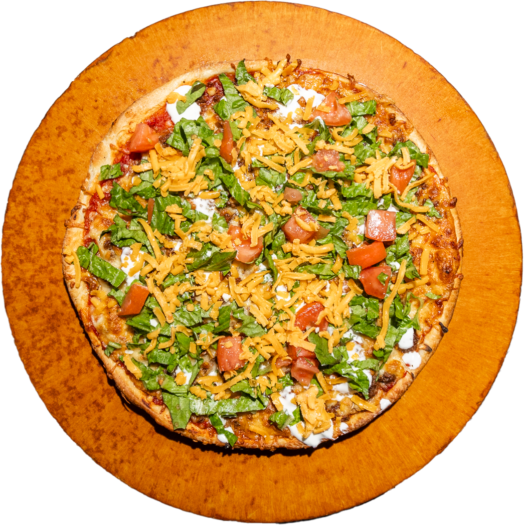 ONIONS, TOMATOES, GROUND BEEF, CHEDDAR, SMOKED BACON